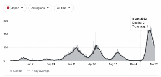 Date: 2022-03-25 01:53 pm (UTC)В любой медицине взвешивают риски и положительные влияния. В случае ковид-вакцин риски никто не знает (и история показывает, что они и не изучаются), а положительный эффект, ну на примере скажем Японии - отсутствует. Просто по данным которые я привела здесь. Положительного эффекта НЕТ. ВООБЩЕ нет.
